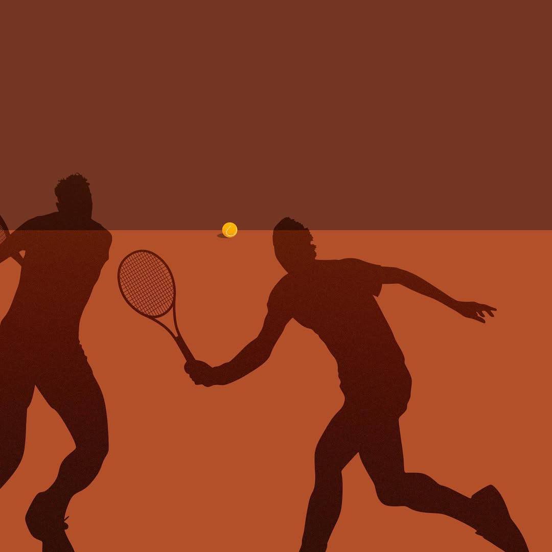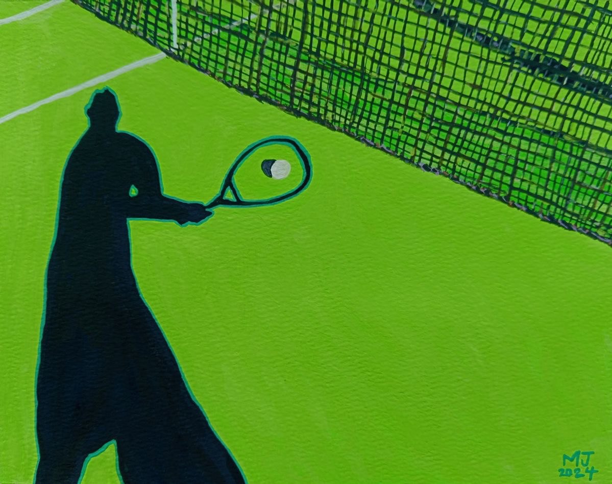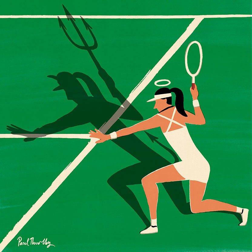 На первый взгляд, кажется, что нет, но я не соглашусь и скажу, что да, могут! (рис 2). Я открыл и пролистал часть своей коллекции и понял, что теннис и тени вещи нераздельные (хотя тень вообще, сама по себе, штука неотделимая от своего источника и порой становится очень узнаваемой, как например на иллюстрации итальянского иллюстратора Paolo Metaldi, рис. 3 и 4). Для некоторых художников тень вообще становится главным героем на корте, отражает то, что порой не видно прямому взгляду (как на шуточных картинах Mauro C Martinez, рис 5). И особенно теннис и тень переплетаются, когда играешь под открытым небом. В зале все более-менее выверено требованиями стандартов и люксметрами особо занудных любителей (рис 6).