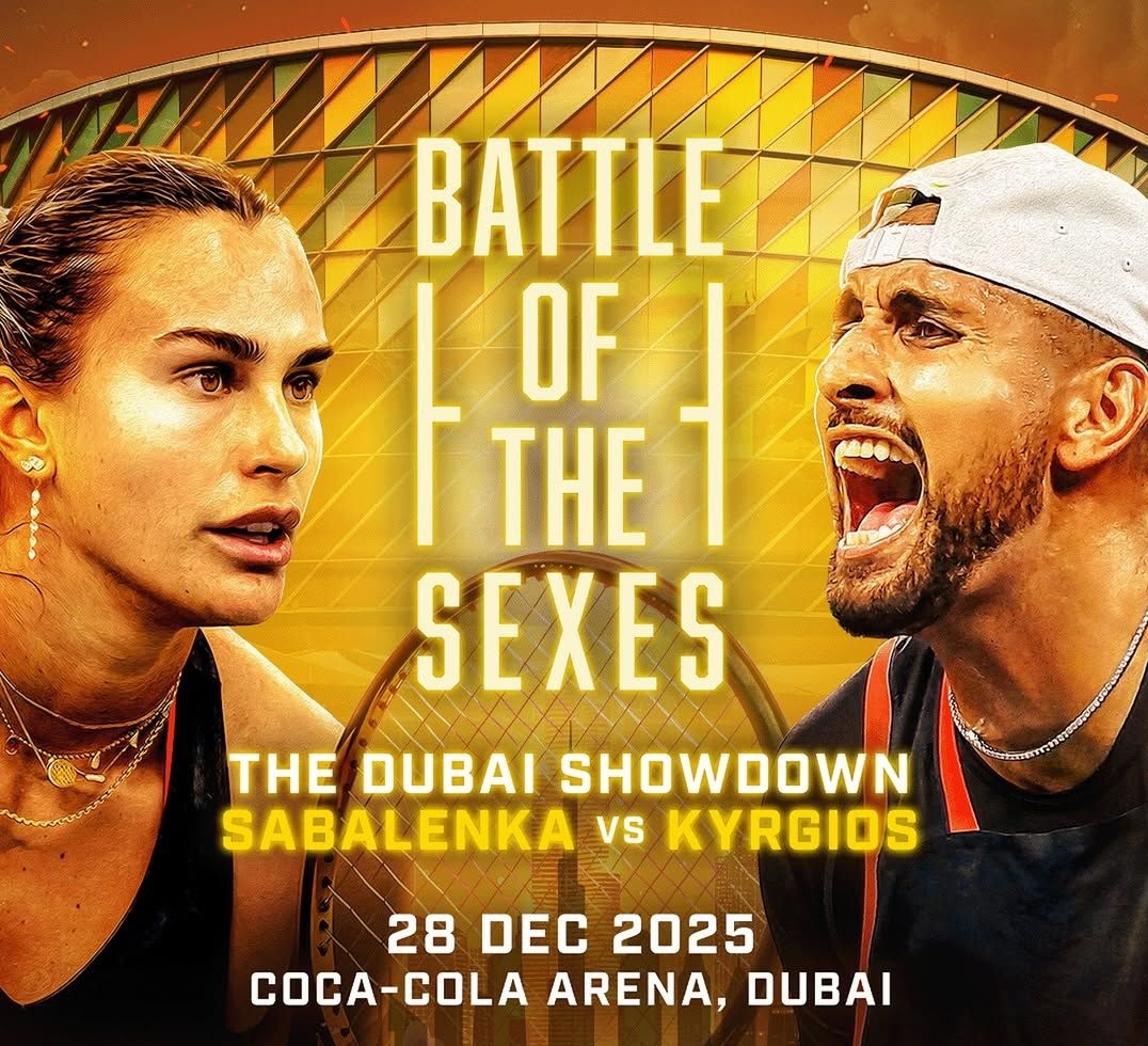 Четырёхкратная победительница турниров «Большого шлема», лидер мирового рейтинга белорусская теннисистка Арина Соболенко и финалист Уимблдона австралийский теннисист Ник Кирьос проведут очный выставочный матч в декабре 2025 года. «Битва полов» состоится 28 декабря в Дубае, об этом теннисисты сообщили в социальных сетях. Правила матча не уточняются, однако ранее Кирьос рассказывал, что размер корта для него будет меньше, чем для Соболенко.
