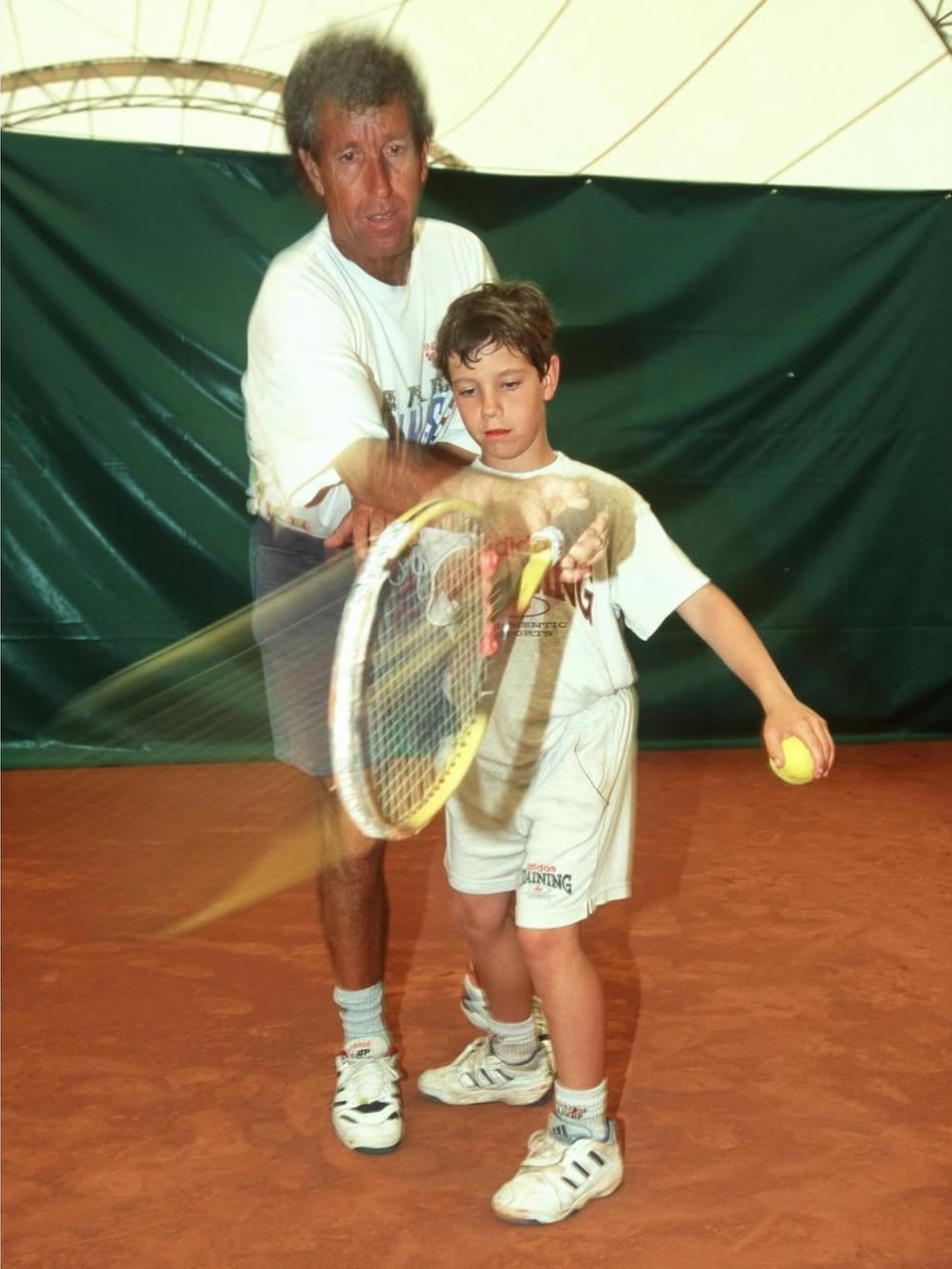 Это сложный для исполнения удар, особенно при высоком отскоке. При этом он не сулит каких-то особых преимуществ, а с другой стороны почти не оставляет маневра для ошибок… С тех пор как мой отец начал учить меня теннису, я все время использовал одноручный бэкхенд. Я улучшил его с годами, но даже в юном возрасте у меня никогда не было ощущения, что ракетка настолько тяжела, настолько чтобы использовать при ударе слева обе руки. Многие разбирали этот мой бэкхенд по элементам, каждую десятую долю секунды. Твердая постановка ноги, чтобы придать энергию, широта жеста, при котором ракетка заводится за голову, чтобы отбить мяч с максимальной скоростью; ротация подбородка, который упирается в верхнюю часть правого плеча; перенос веса тела, неподвижная голова и слегка согнутые колени.