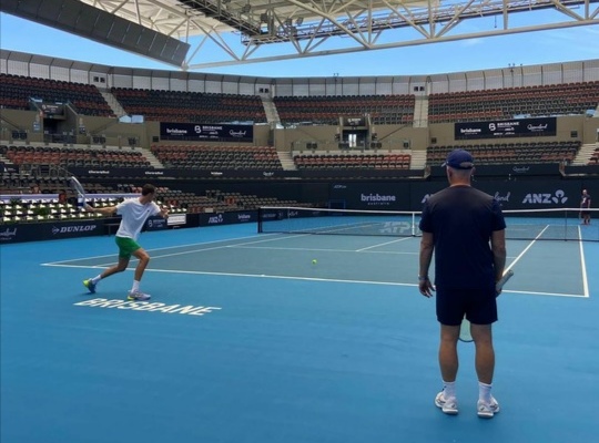 Чемпион US Open-2021, 13-я ракетка мира Даниил Медведев провёл первую тренировку на кортах турнира категории ATP-250 в Брисбене, где начнёт свой сезон-2026. Соревнования пройдут с 5 по 11 января.