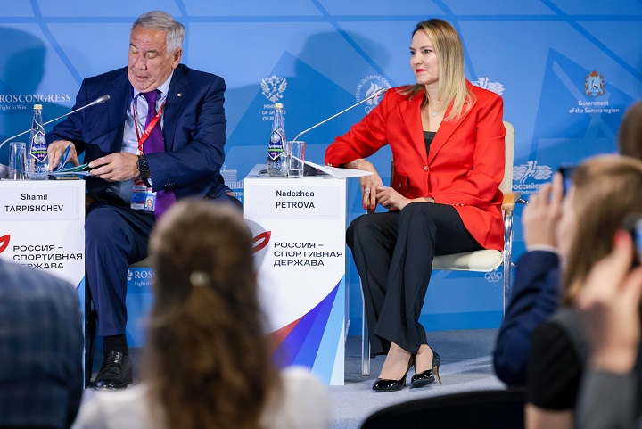 В рамках форума «Россия – спортивная держава» состоялась сессия «150 лет российскому теннису: от великой истории к новым победам», в которой приняли участие президент Федерации тенниса России Шамиль Тарпищев, заместитель министра спорта РФ Алексей Морозов, легенда российского тенниса Надежда Петрова и вице-президент Федерации тенниса России Галина Каплан.